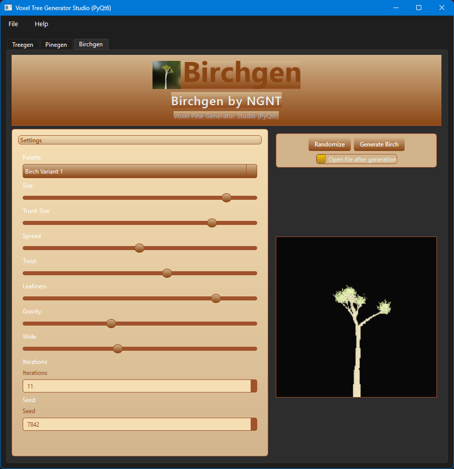 | Tags | asset-creation, game-assets, gamedev-tool, magicavoxel, Procedural Generation, teardown, tree-generator, treegenvox, Voxel, voxel-art |